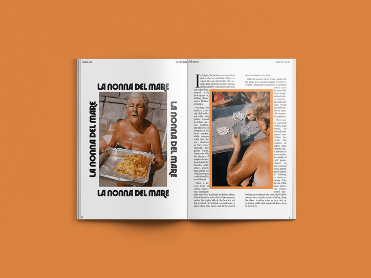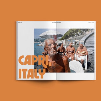 Il Mare is a travel based magazine that focuses on the lifestyle of native Italians living in beach towns. It speaks to the laid-back nature of life on the Mediterranean, while bringing attention to the almost ‘fetishization’ of these people from the American-lens. Color palette, fonts, and layouts were chosen based on a combination of research and overall aesthetic. Simple page layouts emphasize the the simplicity and serenity of life on the beach. Furthermore, the simple layouts draws attention to the content of the piece, expressing a strong commitment to the magazine’s overall message.